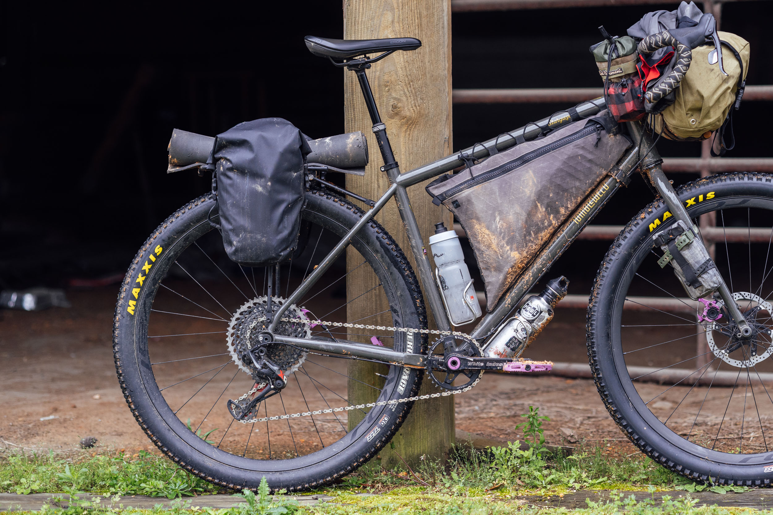 As a bonus, packing a pannier is inherently easier and quicker than the more meticulous approach required with most modern bikepacking bags. We’d suggest organising your heaviest gear at the bottom of the pannier when you can to minimize the effect on your bicycle’s handling off-road. If you’re in that in-between zone of “panniers are too big, bare bike is too small,” try our cargo cage and fork mount bag Gear Index.