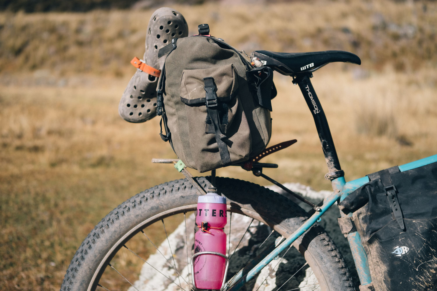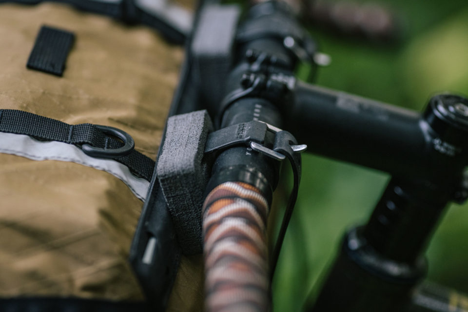 In our experience, saddlebag designs that feature mounting points on the underside of the bag work best for burly dirt road touring; a well-placed strap or two will prevent the bag from bouncing up and down or side to side, destabilising the bike. Be sure to check every once in a while to make sure there are no stress points. This kind of secondary attachment system is less important for gravel road bikepacking, where a single attachment behind the saddle is usually just fine.