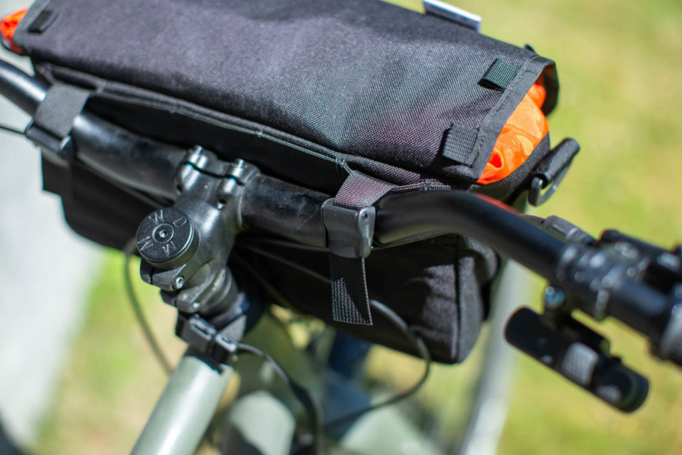 The Handlebar Pack has a removable aluminum stabilizer bar that’s designed to leave more room for your hands and help stabilize the load. Two pieces of One-Wrap Velcro hold the stabilizer to the handlebar, and two Voile-style straps secure the bag to the bar. The only downside is that the position of the stabilizer means it will likely rub on most stems. Because it’s removable and there’s a daisy chain attachment point on the bag itself, you could theoretically skip the stabilizer, but it would likely result in a far less sturdy setup.